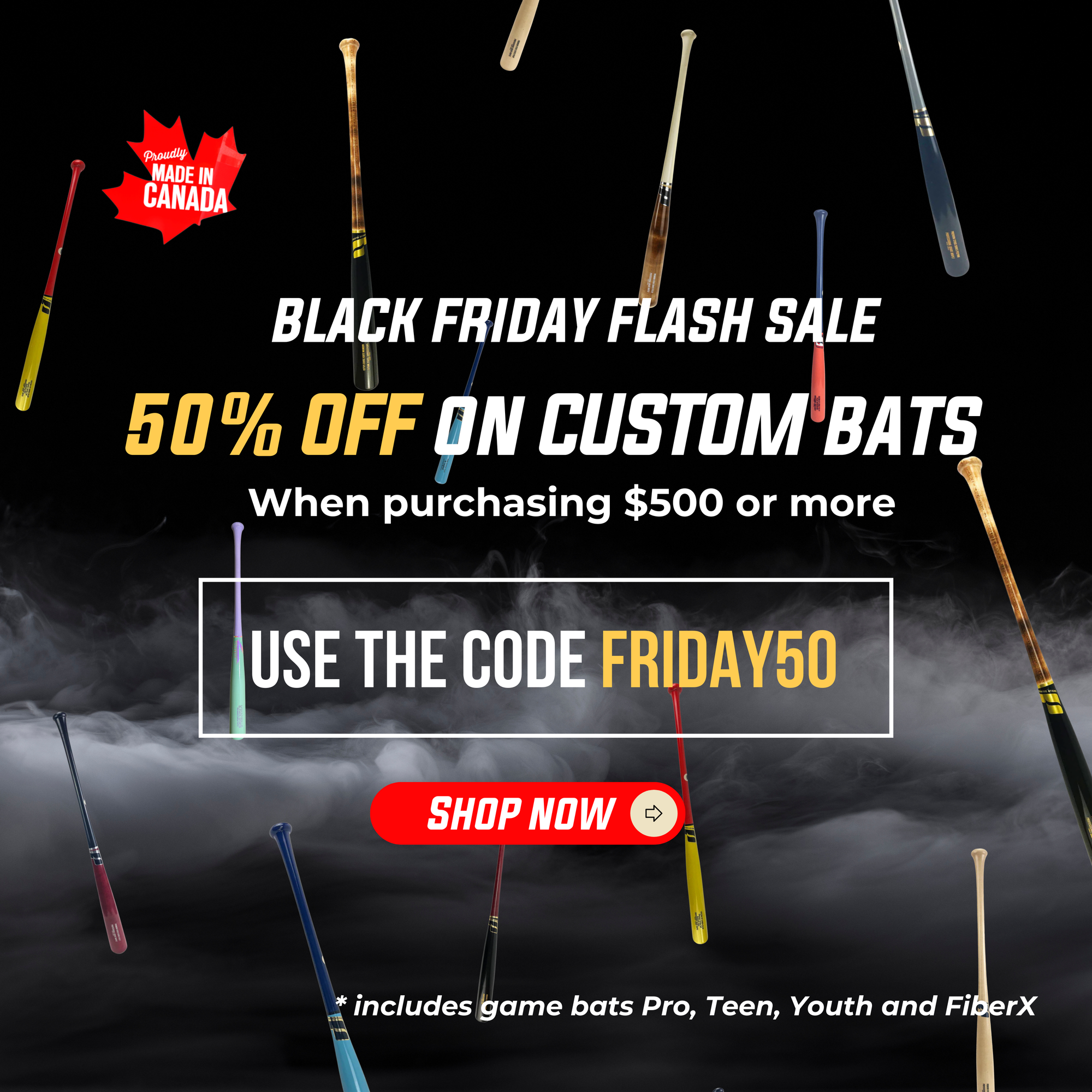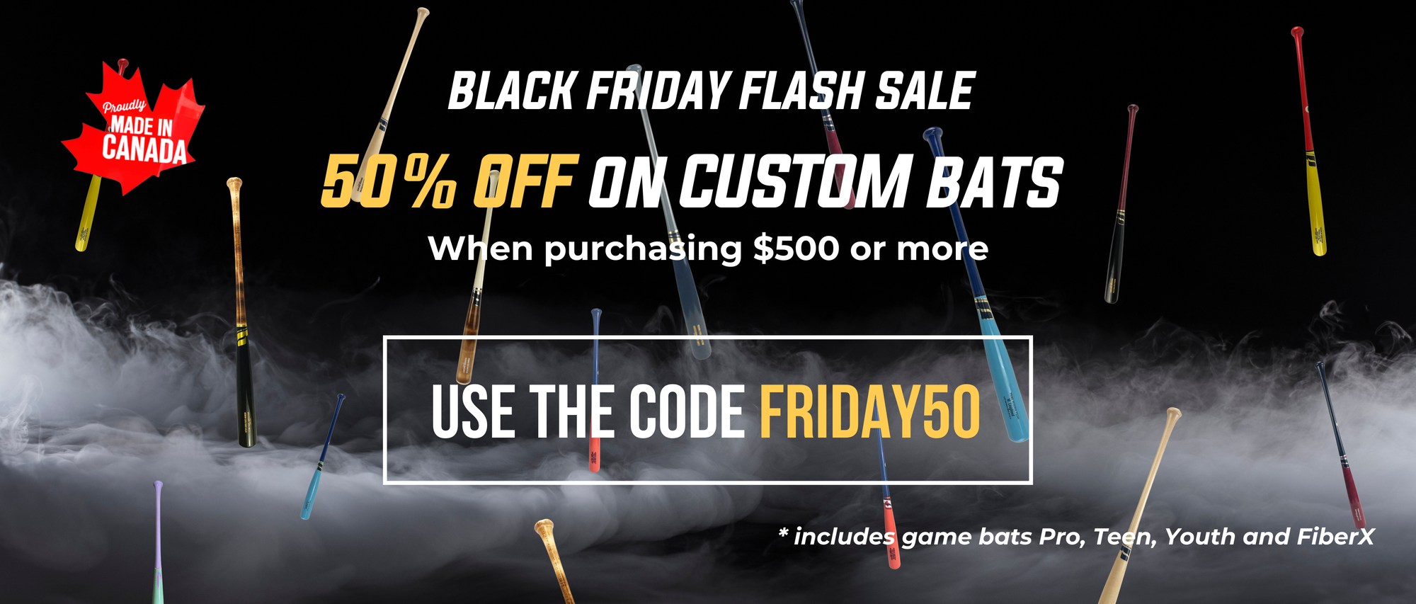 50% OFF on Custom Bats with code FRIDAY50 on orders over $500